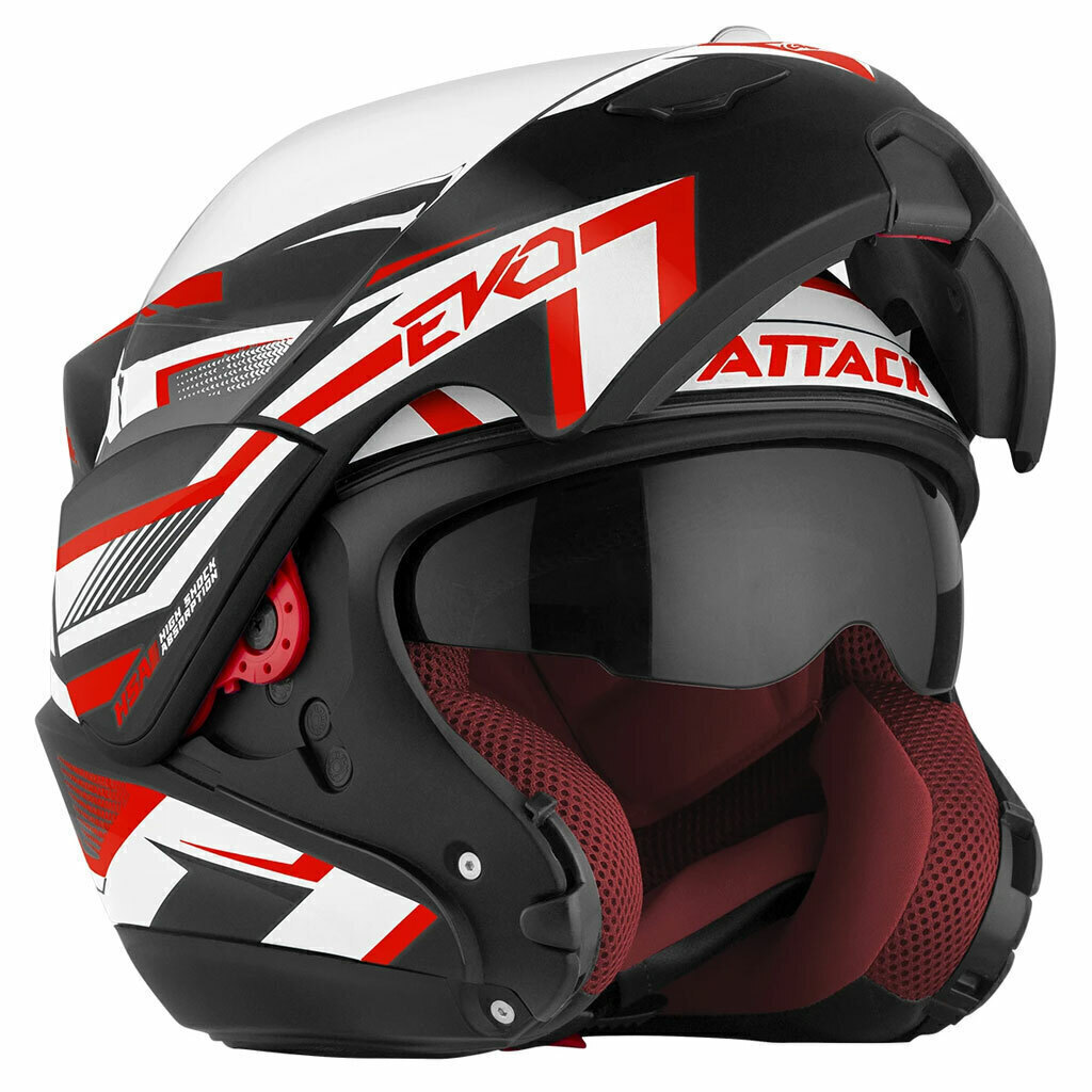 O capacete escamoteável articulado Pro Tork Attack Evo permite que seu conjunto frontal seja aberto de duas formas: parcialmente, levantado apenas sua viseira ou totalmente através do acionamento de um único botão central, que agiliza a abertura de todo o conjunto frontal para cima, tornando-se um capacete aberto. Este acionamento é o mais moderno e prático do mercado, pois possibilita que o motociclista faça a abertura com apenas uma das mãos, sem que seja necessário parar a motocicleta, mesmo estando utilizando luvas.
