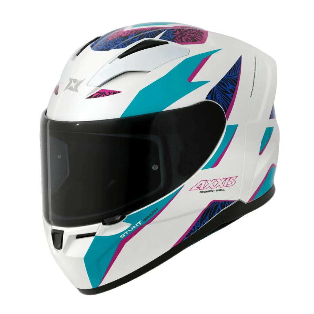 01- Capacete Axxis FF117N Segment Stunt A7 Gloss Pearl/White/Blue, com viseira original Crital, não Fumê