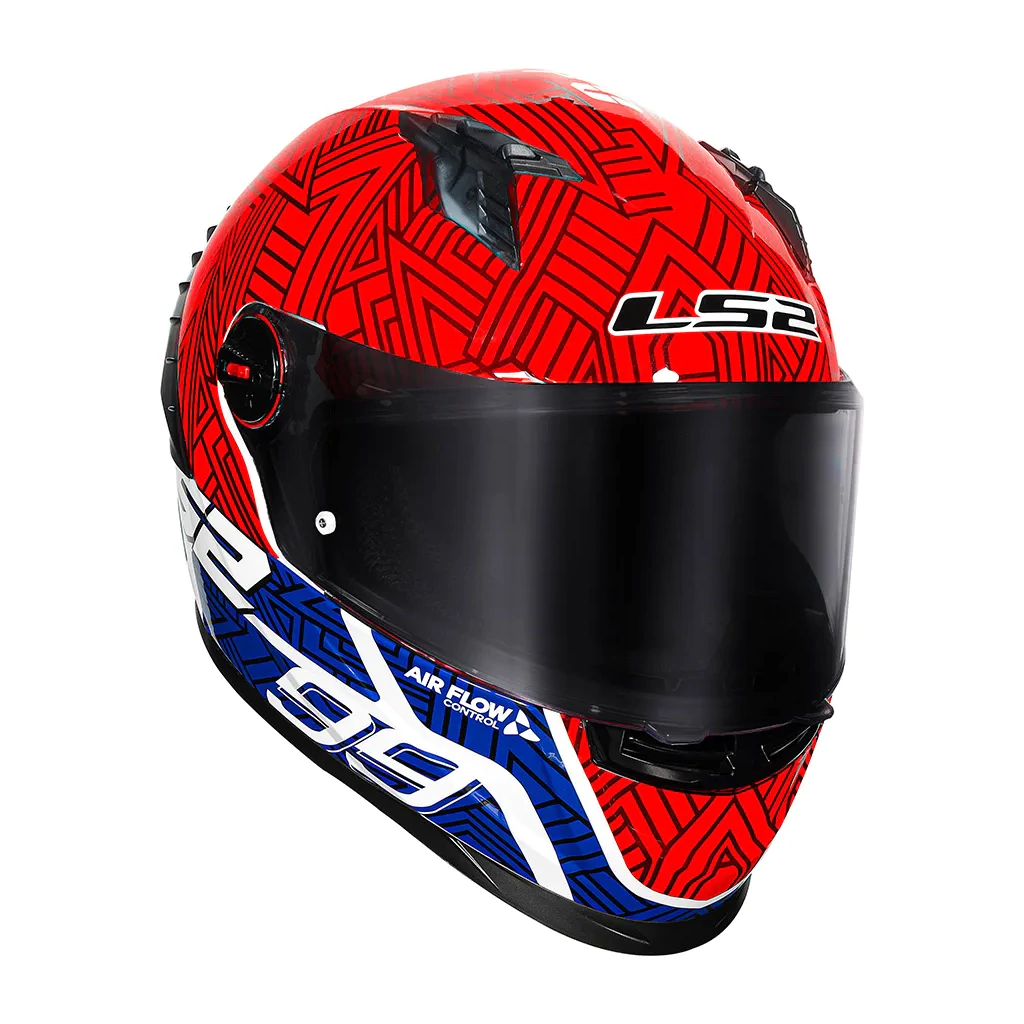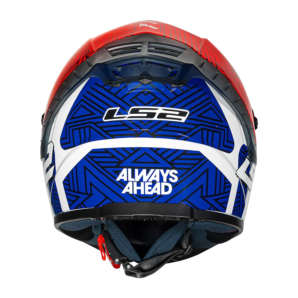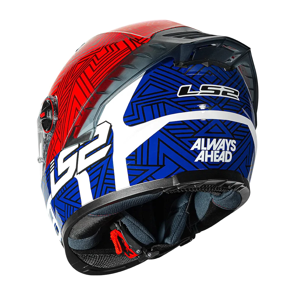 01- Capacete LS2 FF358 Classic Pro Tiempo Whithe Red Blue, com viseira original cristal, não fumê