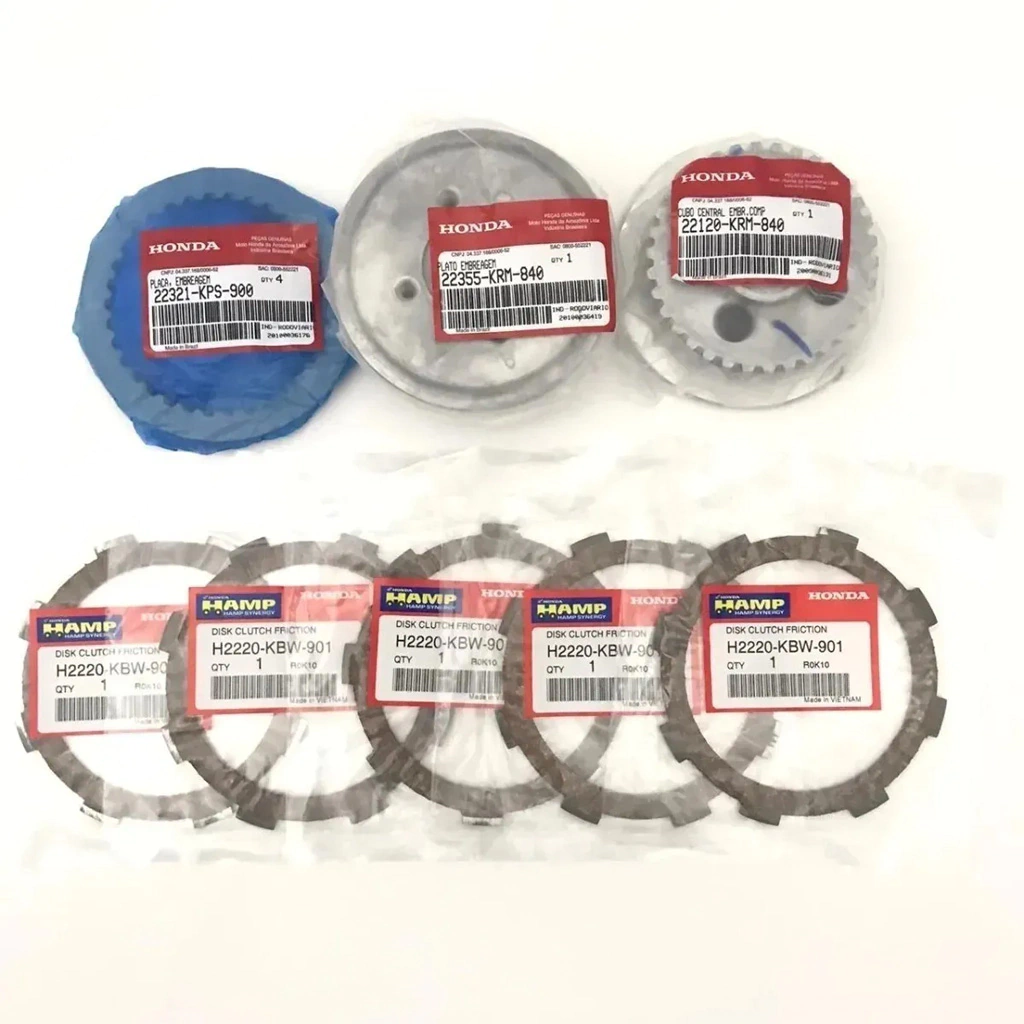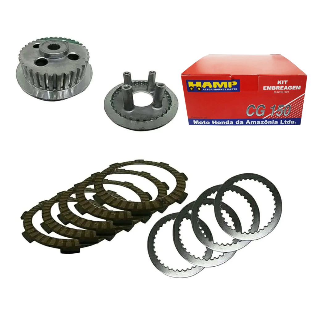 Embreagem completa para CG Titan 150 2004 em diante com Plato, Cubo, Separadores e Disco, pronta para instalação, sem necessidade de adaptações, modelo original da Honda, fabricado pela Hamp, produzido com materiais de alta qualidade e resistentes, garantindo maior durabilidade.