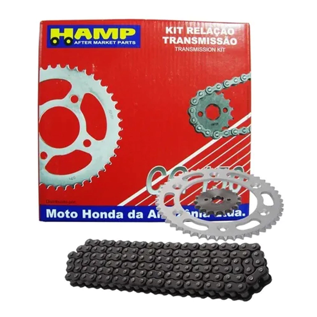 Para as motos rodarem tranquilas e apreciarem cada quilômetro, a Hamp criou o Kit Relação Transmissão Titanium. Feito em aço 1045, que possui uma presença maior de carbono, sendo mais resistente e seguro, ele conta com toda a durabilidade que você precisa para rodar tranquilo e sem problemas. Ele é composto por uma coroa, um pinhão e uma corrente.