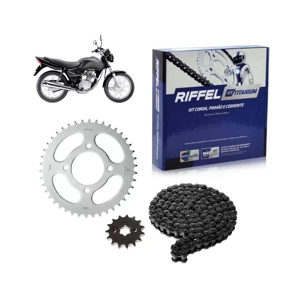 01- KIT TRANSMISSÃO (RELAÇÃO - COROA - PINHÃO - CORRENTE - COM RETENTOR ) HONDA CG 125 TITAN \ FAN \ CARGO 00 - 08