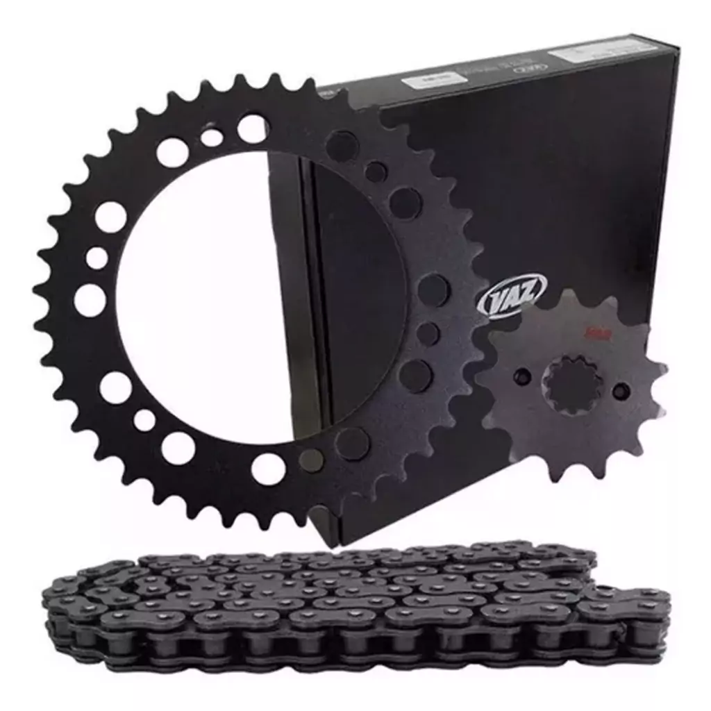 Para as motos rodarem tranquilas e apreciarem cada quilômetro, a VAZ criou o Kit Relação Transmissão Titanium. Feito em aço 1045, que possui uma presença maior de carbono, sendo mais resistente e seguro, ele conta com toda a durabilidade que você precisa para rodar tranquilo e sem problemas. Ele é composto por uma coroa, um pinhão e uma corrente.