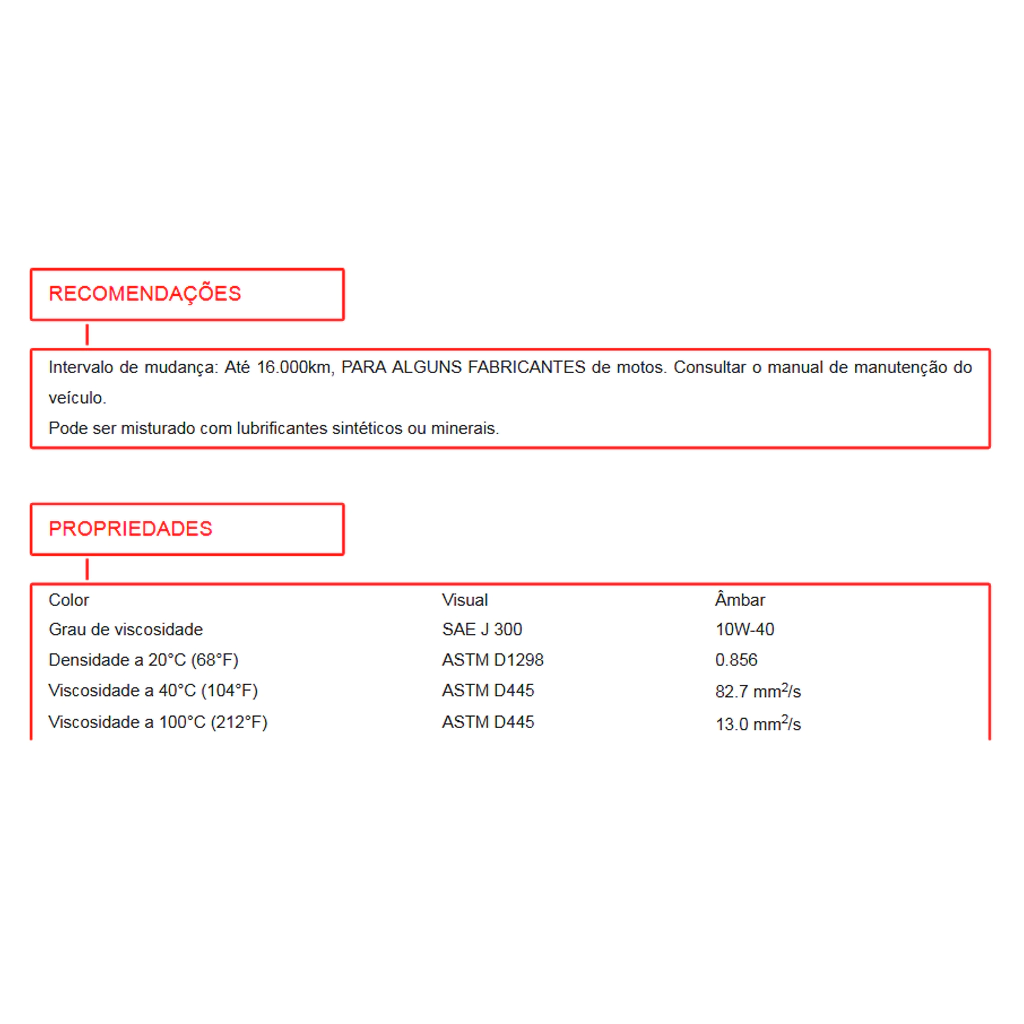 Desenvolvido para condições severas de uso esportivo ou aventura. Outras aplicações: Quadriciclos, UTVs e motos aquáticas, dependendo da recomendação de viscosidade do fabricante.
