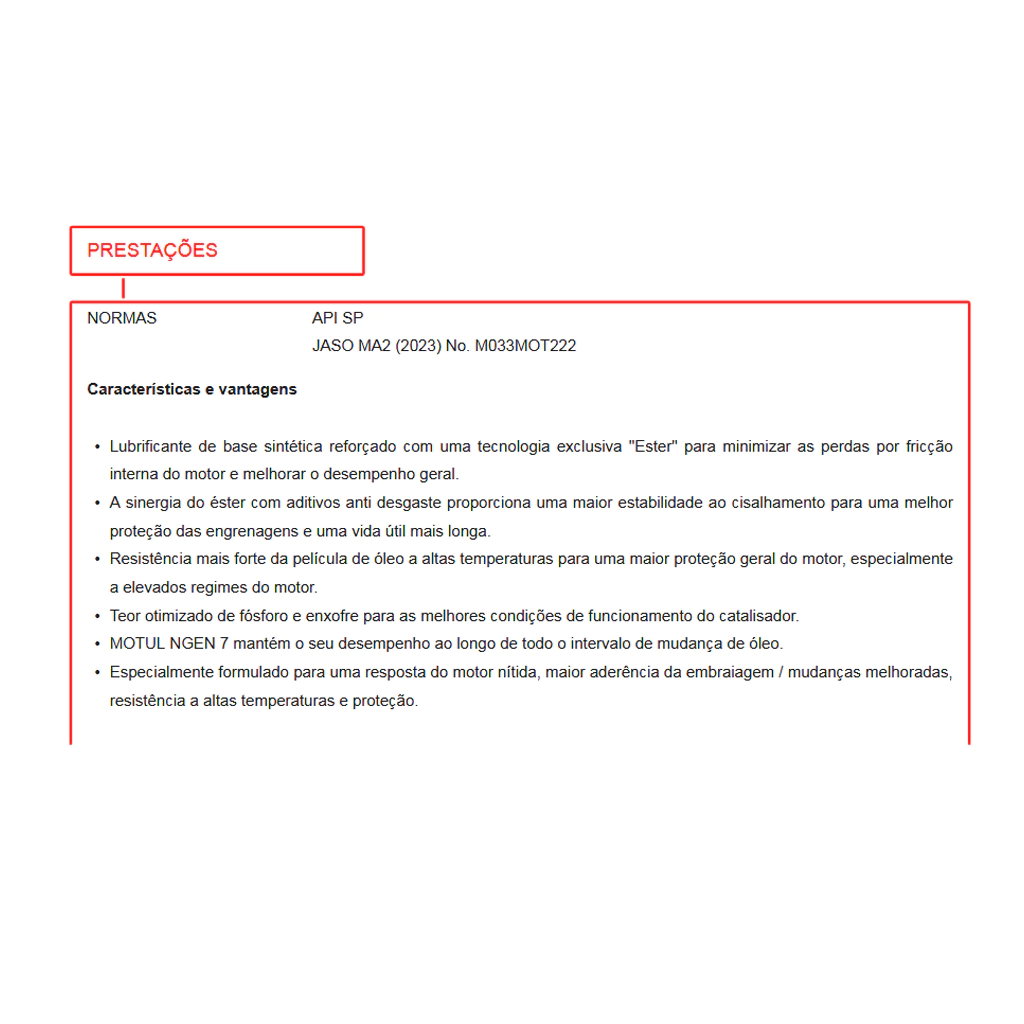 MOTUL NGEN 7 é o melhor óleo de motor da categoria para motores 4 tempos baseado em uma combinação dos melhores óleos básicos e aditivos, misturado com ésteres e óleos básicos rerrefinados de alta qualidade. Adequado para qualquer tipo de motocicleta off-road ou de rua equipada com motor 4 tempos, com ou sem caixa de câmbio integrada, embreagem seca ou úmida.